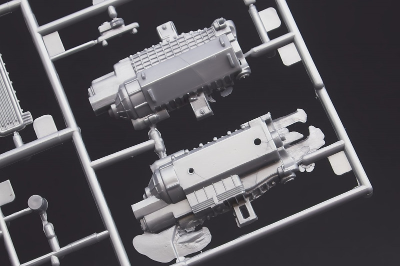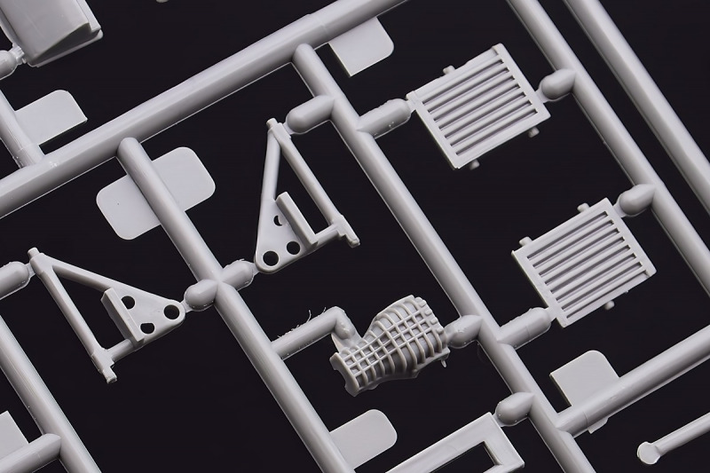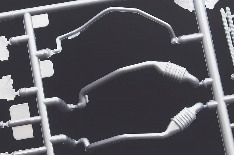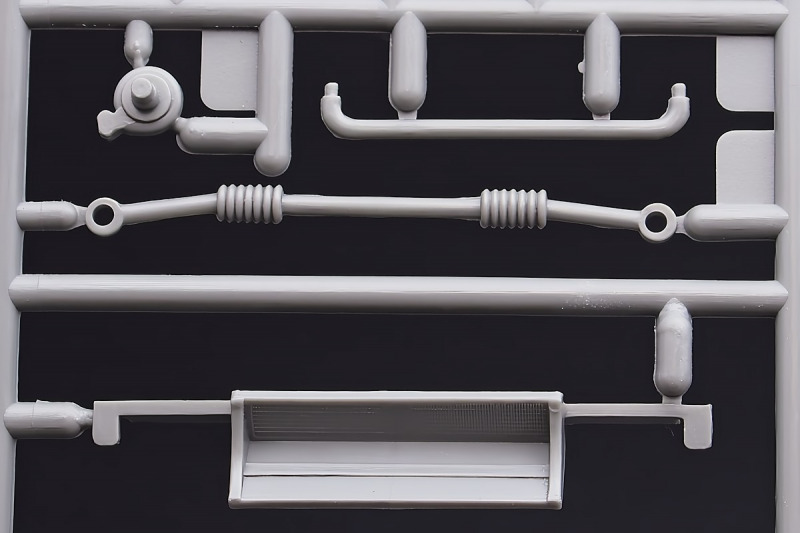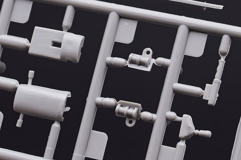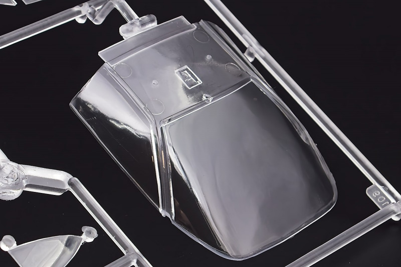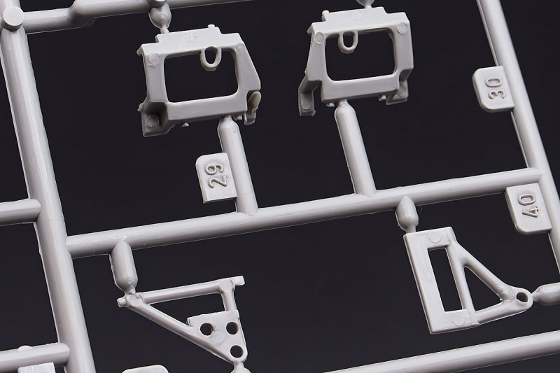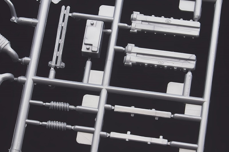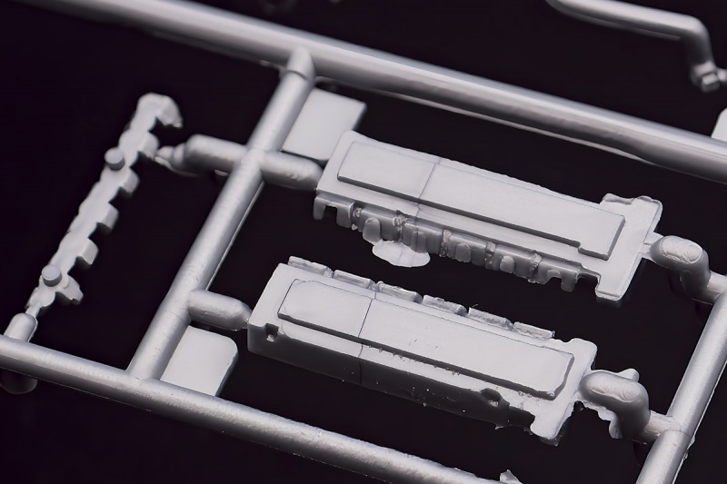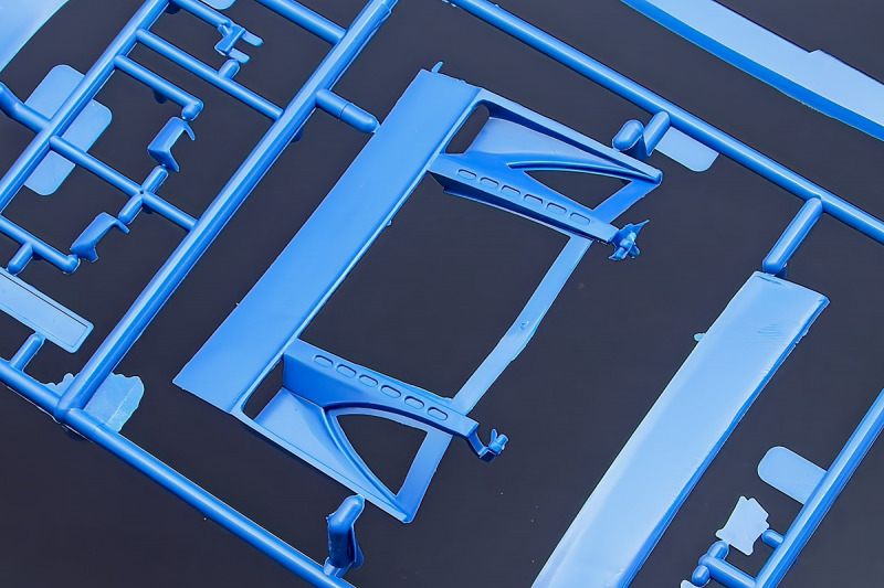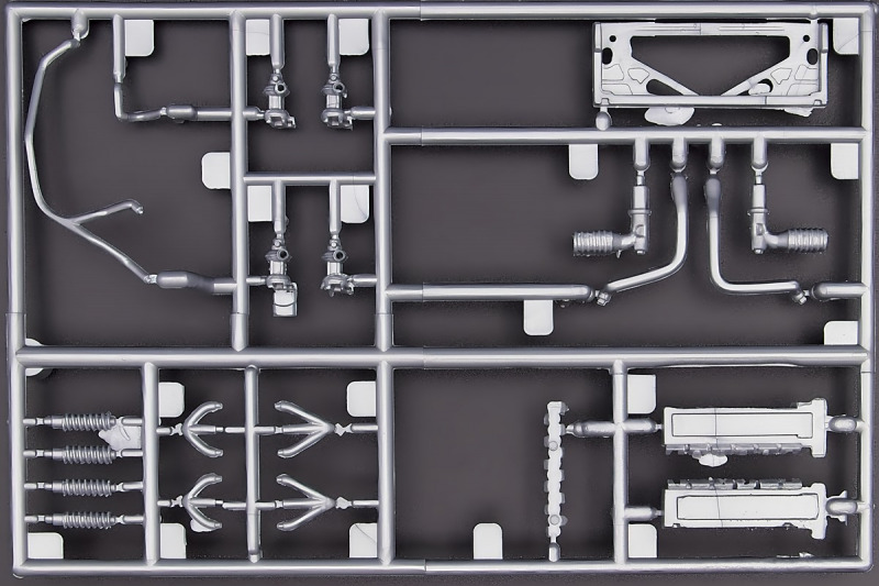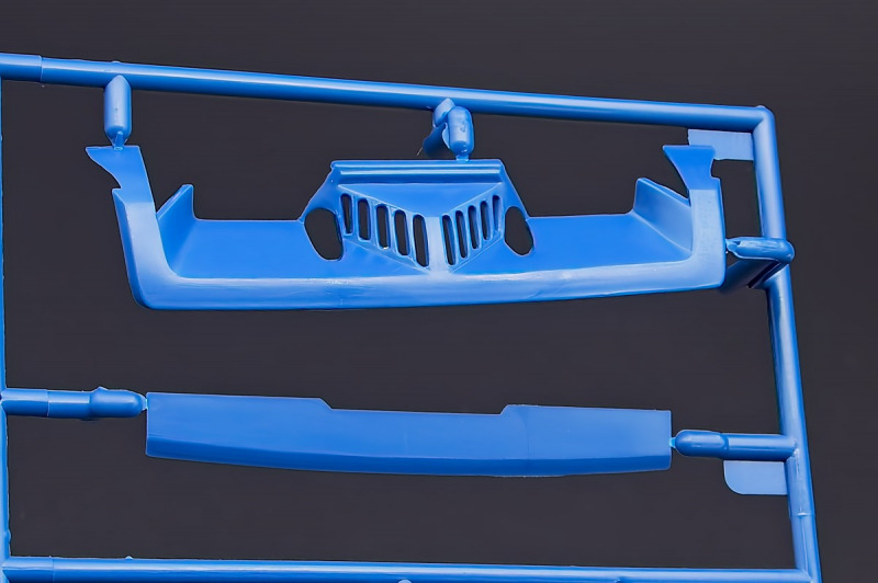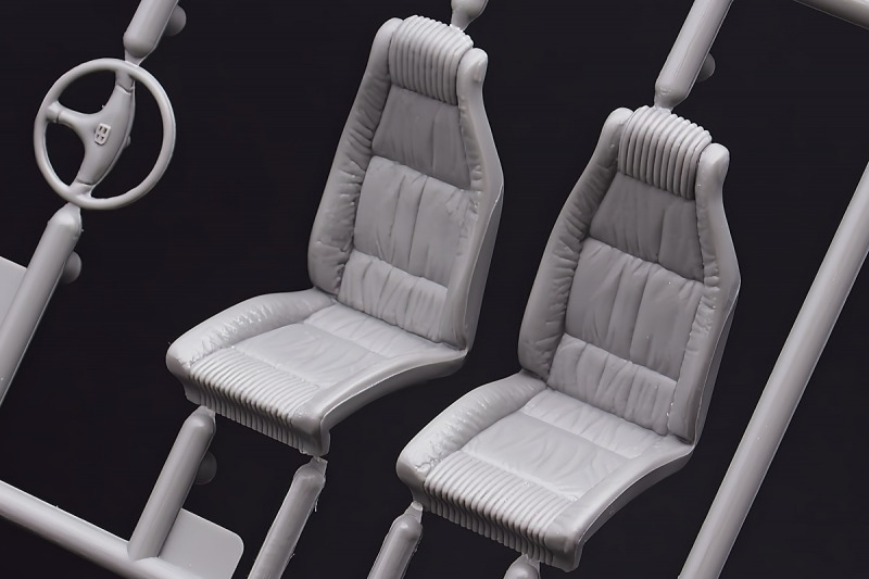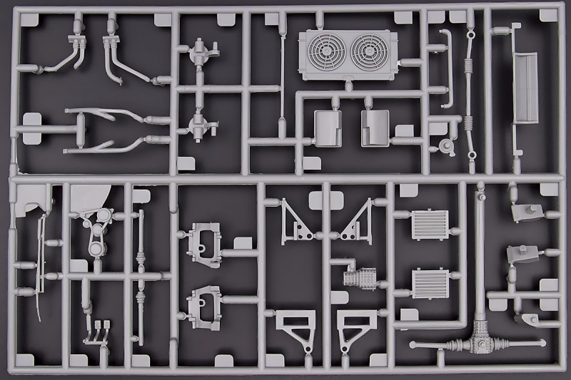 Revell hat sich ganz schön lange Zeit gelassen, den Bausatz des Bugatti EB110 mal wieder neu aufzulegen. "Ups I did it again" ist hier alles andere als zutreffend. Tatsächlich gab es ihn bisher nur einmal und er blieb auch nur wenige Jahre im Programm. Da schrieb am noch eine 19 am Anfang der Jahreszahl, so lange ist das schon her. Zwischenzeitlich hatte er sich zu einem begehrten Sammlerstück gemausert, mit entsprechenden Preisen. Nun kommt er im neuen Schachteldesign daher, mit neuem Decalbogen und aktueller Bauanleitung. An den Bauteilen hat sich erwartungsgemäß nichts geändert. Warum auch, der Bausatz war für damalige Verhältnisse echt top. Die 148 Bauteile sind in in drei Farben gespritzt, grau, blau und silber. Bei der Erstauflage war der Rahmen mit den Felgen noch verchromt, das hat man gottseidank hier bleiben lassen. Die Gussqualität ist so o-la-la, es gibt einiges an Fischhaut, Grate und auch ziemlich große Auswerferpins. Da kann der Bausatz seine 30 Jahre, die er auf dem Buckel hat, nicht ganz verleugnen. Demgegenüber kann der Bausatz mit einigen wirklich hervorragend gemachten Details aufwarten. So sind z.B. die Sitze die besten, die ich bis dato in einem 1:24er Bausatz vorgefunden habe. Man kann das edle Leder von Poltrona Frau quasi förmlich riechen beim Anblick der fein strukturierten Sitze. Auch der Rest vom Innenraum weiß zu überzeugen. Das Armaturenbrett strotzt geradezu vor Details. Das I-Tüpfelchen sind die Wurzelholz-Decals. Das kann Van der Rostens ihre Uschi auch nicht besser! Der aus fast 50(!) Bauteilen bestehende Motorraum verschwindet leider fast vollständig unter der Karosserie. Das gleiche gilt auch für die Achsen. Revell hat sich seinerzeit sehr viel Mühe mit diesen Details gegeben. Wenigstens kann man die recht große Klappe hinten öffnen, so sieht man wenigstens etwas von all der Pracht. Getrübt wird die Freude nur von der ganzen Vorarbeit, die man zum Versäubern der Teile leisten muss. Revell hat auch wieder eine ganze Reihe von Decals beigelegt, mit denen man den Motor dem Original noch ein weiteres Stückchen näher bringen kann. Auch die vordere Klappe kann man offen anbauen, darunter kommen dann z.B. die Hydraulik der Bremsanlage und die Batterie zum Vorschein. Die Reifen sind sehr schön gemacht. Sie haben ein originalgetreues Profil und es gibt erhabene Schriftzüge an den Flanken. Ich habe mal nachgemessen, die Originalreifen - vorne 245/40 R18, hinten 325/30 R18 - sollten umgerechnet für 1:24 einen Außendurchmesser von 27,2 mm haben. Die Bausatzreifen sind ca. 1 mm zu klein im Durchmesser. Die Breite passt in etwa. Die BBS-Felgen weisen stellenweise etwas Fischhaut in den Zwischenräumen auf. Schade, dass man durch die Felgen von der Bremsanlage am fertigen Modell kaum etwas sieht, denn diese ist ganz hervorragend wiedergegeben, einschließlich der gelochten Bremsscheiben. Die Vorderräder können beweglich (also mit Lenkeinschlag) angebaut werden. Wer sauber arbeitet, bekommt auch drehbare Räder hin. Die Klarsichtteile sind eher mäßig. Die große Frontscheibe hat eine ungleichmäßige Materialstärke was zu einer welligen Oberfläche führt. Nicht tragisch, aber das fertige Modell wirkt dadurch etwas ´billiger´. Die kleine, senkrechte Heckscheibe ist eher trüb, als wäre die Form nicht sauber poliert gewesen. Sieht man zwar kaum, weil sie unter der großen Heckklappe verschwindet, ärgerlich ist es aber trotzdem.