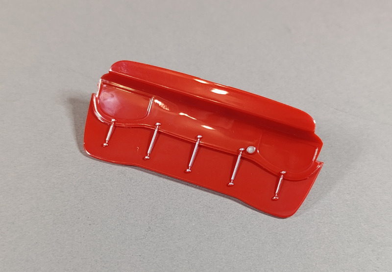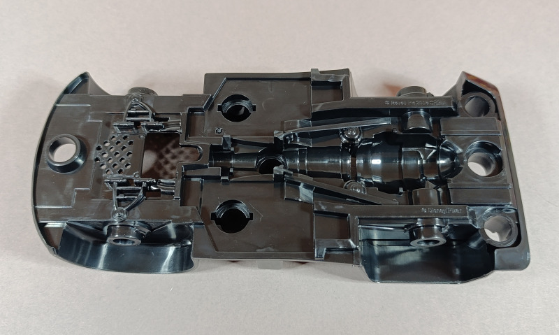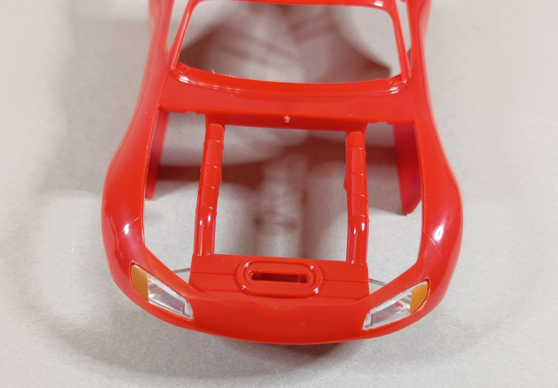 Die Karosserie ist teilweise bereits bedruckt, und auch die Scheinwerfer sind schon angebracht. Der eingefleischte Fan des ersten Films dürfte allerdings wissen, dass Lightning McQueen eigentlich keine echten Scheinwerfer besitzt, sondern lediglich aufgeklebte Sticker trägt, aber hier wollen wir einmal nicht zu pingelig sein. Der Großteil der Verzierung muss dennoch per Aufkleber angebracht werden. Dabei kann die Hilfe der feinfühligen Finger eines erfahrenen Modellbauers durchaus von Vorteil sein.