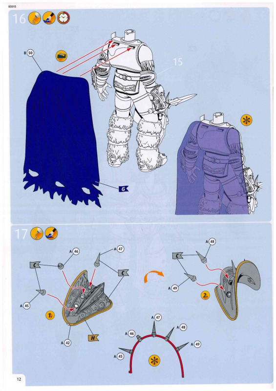 Die Anleitung......ist farbig gedruckt und zeigt in 23 einfachen Schritten, was zu tun ist. Die Bemalung erfolgt dabei jeweils direkt im entsprechenden Bauschritt. Genau hier liegt auch die größte Herausforderung, denn letztlich ist eine gelungene Bemalung das A und O für eine gelungene Figur.
