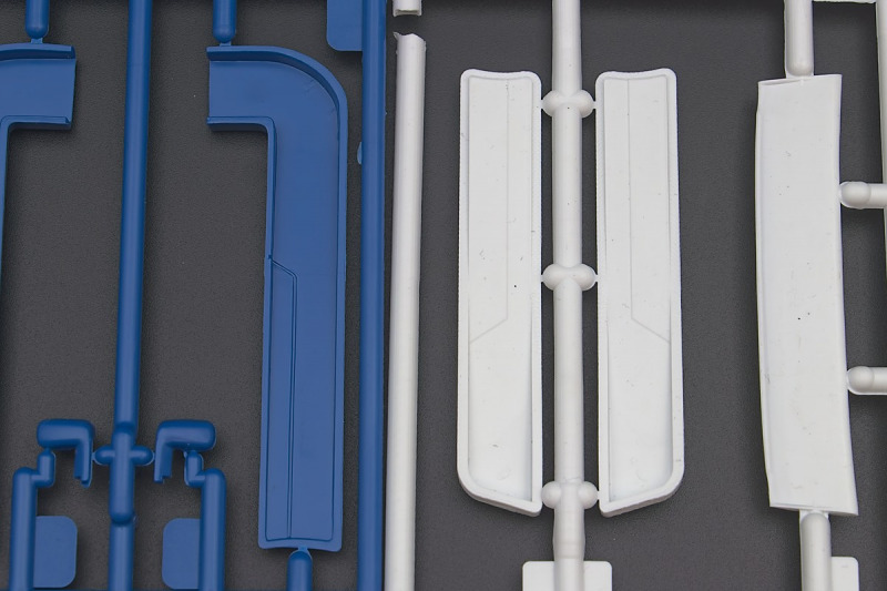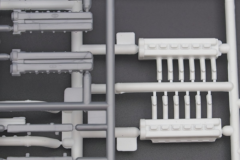 BesprechungAllgemeinesDer Bugatti EB110 wurde bisher zweimal als Modell im Maßstab 1:24 umgesetzt. Einmal von Heller, einmal von Revell (die Auflage von Airfix stammt aus den Formen von Heller). Beide Bausätze sind kurz nach Erscheinen des Originals entstanden, nämlich 1992. Da Revell Ende 2025 sein Modell endlich mal wieder neu aufgelegt hat, bietet sich ein Vergleich der beiden Bausätze an. Wir schauen uns im Folgenden die wesentlichen Bereiche Karosserie, Motor, Innenraum und Fahrwerk an. Zunächst aber ein paar allgemeine Daten, da geben sich die beiden Modelle nicht viel. Eine ansprechende, nützliche Verpackung, Kunststoffteile, Klarsichtteile, Gummireifen, Decals und eine farbige Bauanleitung findet man bei beiden Bausätzen. Man bekommt bzw. bekam sie mit und ohne "Starterset". Bei Revell werden 148 Bauteile (in drei Fraben gespritzt) benötigt, bei Heller sind es nur 84 (ausschließlich weiße Bauteile). Chromteile gibt es bei beiden nicht (Ausnahme: Erstauflage Revell). Beim ersten Betrachten der Spritzlinge fällt sofort die unterschiedliche Philosophie auf, mit der beide Hersteller seinerzeit ans Werk gegangen sind. Bei Heller findet man große Baugruppen, bei Revell ist alles eher klein-klein. Auf den folgenden Bildern liegen die Heller-Teile links, die von Revell rechts, sofern nicht anders vermerkt (oder: Heller weiße Bauteile, Revell nicht weiße Bauteile).