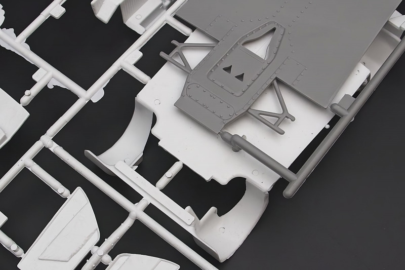 Der MotorBeim Motor schlägt sich Heller in diesem Duell ganz wacker. Zwar besteht deren Motor aus deutlich weniger Bauteilen, was die Detaillierung angeht, liegen die beiden aber nicht so weit auseinander. Man müsste die Motoren schon ausgebaut neben das Modell stellen, um hier einen Vorteil für einen der beiden zu sehen. Beim Blick in die geöffnete Heckklappe dürften beide eine gute Figur machen. Heller hat im Gegensatz zu Revell die einzelnen Komponenten zu weniger Bauteilen zusammengefasst. Der Detaillierung schadet das nicht unbedingt. In jedem Fall kommt es der Montage entgegen, da dürfte man bei Heller sehr viel schneller fertig sein. Auf Decals verzichtet man bei Heller hier gänzlich. Anscheinend legt man da im Gegensatz zu den Flugzeugen bei den Pkw-Bausätzen nicht so viel Wert drauf - schade eigentlich. Vielleicht gibt es ja mal eine Wiederauflage, wo man das ändert.