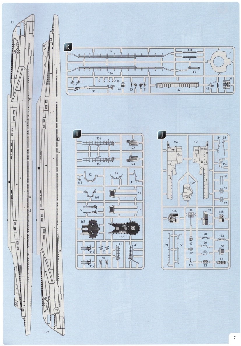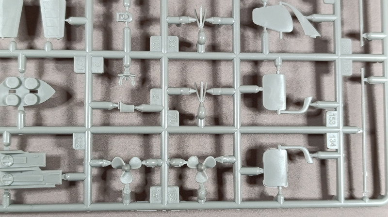 zum Bausatz:Endlich wurden die Rufe erhört und ein ansprechender Bausatz des Typ IX erschien bei Revell. Aktuell ist dieser auch der einzige Bausatz im Maßstab 1:144 zu den sogenannten „Amerika-Booten“. Das ist durchaus verwunderlich, denn mit insgesamt 243 gebauten Einheiten waren die Typ-IX-Boote nach dem Typ VII die zweitmeistgebauten U-Boote der Kriegsmarine und zugleich deren größte in Serie gefertigte Hochsee-U-Boote. Konkret ermöglicht der Bausatz allerdings lediglich den Bau der U-190, die zur Unterklasse C/40 gehörte. Sicherlich werden künftig weitere Versionen folgen, aktuell ist jedoch noch nichts angekündigt. Auch die Konkurrenz, etwa Trumpeter, scheint derzeit keine Ambitionen zu haben, einen eigenen Bausatz dieser U-Boot-Klasse in 1:144 aufzulegen. Als Besonderheit stellt Revell hier ein Boot mit sogenannten Schnelltauchbacken dar, was dem Modell eine markante Optik verleiht. Der längliche Karton ist als Seitenöffner ausgeführt. Darin befinden sich die sieben Gussrahmen sicher in Folie verpackt, während die beiden Rumpfhälften sowie die zweiteiligen Decksegmente separat beiliegen. Das Cover zeigt eine Gefechtsszene, in der das U-Boot gerade auftaucht, vermutlich eine fiktive Darstellung, denn wer sich mit der vergleichsweise ereignisarmen Geschichte der U-190 beschäftigt, stellt schnell fest, dass lediglich zwei gesicherte Versenkungserfolge verzeichnet sind. Wie nicht anders zu erwarten, ist der Guss sauber ausgeführt: Kaum Formtrennnähte, kein Flash, genau das darf man von einem New Tool aus dem Hause Revell auch erwarten.