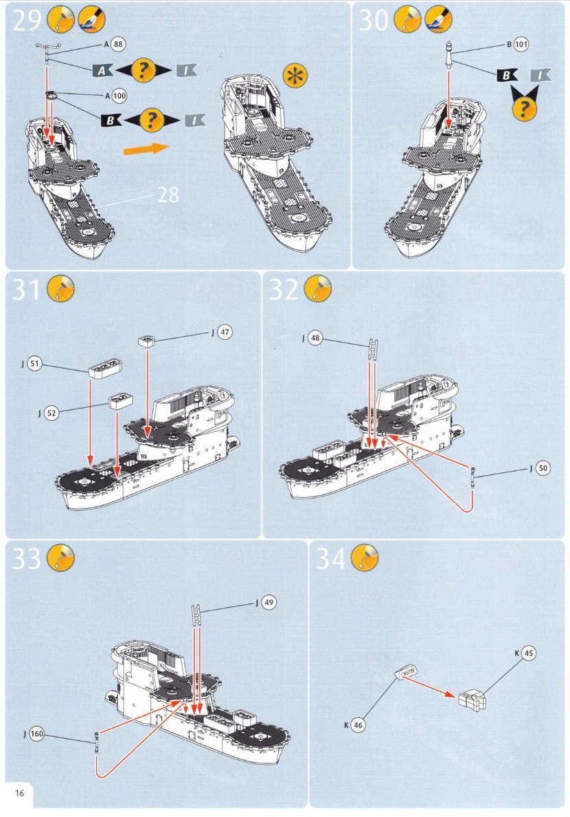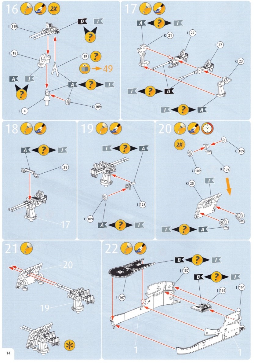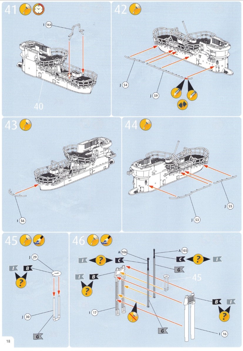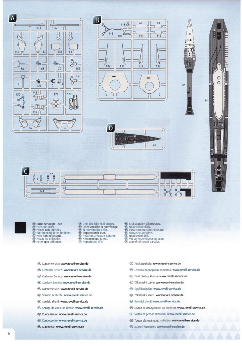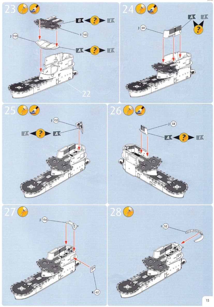 Anleitung:Mit der klassischen Revell-Anleitung gibt es im Grunde keine Probleme. Insgesamt sind 54 Bauschritte notwendig, bis ein fertiges U-Boot auf dem Tisch steht. Bei der Bemalung empfiehlt sich jedoch eine eigene, vertiefte Recherche, um ein möglichst stimmiges und vorbildgerechtes Ergebnis zu erzielen.
