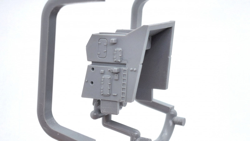 Aufbauten, Brücke und MastDer komplexe Brückenaufbau besteht aus insgesamt sieben Hauptkomponenten. Diese sind teilweise mit komplexen Werkzeugtechnik umgesetzt. So besteht z.B. das Hauptbauteil der Brücke aus einem einzigen Spritzgussteil. Um dies in einem Spritzgusswerkzeug umzusetzen, sind verfahrbare Schieber im Werkzeug erforderlich, um die Bauteile nach dem Spritzgussvorgang entformen zu können. Bei dem Brückenbauteil sind es wenigstens sechs Schieber die in der Horizontalachse verfahren müssen. Das erfordert eine absolut perfekte Werkzeugherstellung, um sicher zu stellen, dass die Schiebertrennungen mit minimalster Toleranz gefertigt sind. An dem Bauteil ist keum Grat oder Formtrennversatz zu sehnen, was bedeutet, dass der Hersteller über einen hervorragenden Werkzeugbau verfügt. Im Trennbereich der Schieber ist lediglich in einer Detailaufnahme der vorderen Brückenstruktur ein geringer Formtrennversatz zu sehen - siehe Datailfoto. Wie die Brücke, so sind auch die weiteren komplexen Bauteile in einwandfreier Qualität hergestellt und verfügen bereits über diverse feine Details. Zur Zentrierung der Bauteile finden sich auch hier stabile Zapfen und Langlöcher zur Zentrierung. Das alles erinnert ein wenig an einen Steckbausatz, ich bin aber davon überzeugt, dass sich mit der Methode die Bauteile perfekt fixieren und verkleben lassen werden. Die Montage diverser kleiner Unterbaugruppen, sowie der vielen Kleinteile erfordert insgesamt sieben Montagschritte zuzüglich diverser Untermontagegruppen. Neben Schotten, Fittings, Schlauchhalterungen, Radargeräten, Rettungsinseln, Podesten, Antennen sind zusätzlich einige der enthaltenen Fotogeätzten Bauteile anzubringen. Sämtliche Kleinteile sind in ebenso guter Qualität und sehr fein detailliert wiedergegeben. Als weitere Komponente findet sich der Aufbau um den vorderen Rauchgasabzug, sowie der komplexe Dreibeinmast. Der Aufbau für den Rauchabzug besteht wiederum aus einem Spritzgussteil und diversen anzubringenden Kleinteilen, sowie einer fotogeätzten Steigleiter. Die Struktur des komplexen Mast ist aus mehreren Einzelteilen zusammen zu setzen. Die Teilung der quadratischen Hauptstrebe in zwei Hälften ist gut gelöst. Die Stützstreben bestehen aus einem einzigen Bauteil. Bei dem Zusammenbau der Maststruktur sollte unbedingt die richtige Position der beiden Stützstreben direkt am Brückenaufbau geprüft werden, da der Mast erst nach Komplettierung am Brückenaufbau anzubringen ist. Die Rahen sind sehr fein und fragil und daher mit Vorsicht vom Gussast zu trennen und zu montieren.