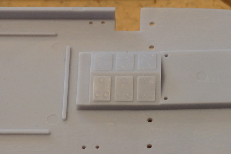 Manches, wie beispielsweise die Winden, ist vereinfacht dargestellt. Auch an den Aufbauten und den Radar- und Funkantennen auf dem Brückendach lässt die Detailtiefe etwas zu wünschen übrig, aber grundsätzlich kann man durch eine entsprechende Bemalung schon etliches herausholen. Manche Strukturen an den Aufbauten (beispielsweise die Fensteröffnungen in den Oberlichtern) sind seeehr dezent wiedergegeben, hier ist eine ruhige Hand, die den Pinsel führt, fraglos von Vorteil. Als ein Kuriosum aus der Entstehungszeit des Bausatzes darf Teil Nr. 21 betrachtet werden: eine wehende Flagge mit ordentlicher Materialstärke, die selbst bemalt werden darf; ein Decal dafür gibt es nicht.