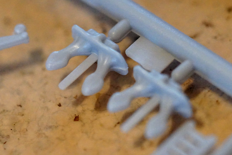 Auch hier ist die bei Heller-Schiffsbausätzen unvermeidliche Standard-Reling zu finden, die über alle Maßstäbe gleich ist. Trotz der nach wie vor seltsamen Ausführung ist die Gussqualität des hier in schwarzen Kunststoff produzierten Astes gut. Die Verwendung von Alternativen, beispielsweise in Form von Ätzteilen, sollte aber schon erwogen werden, da die Bauanleitung weder hier noch bei Bausätzen in anderen Maßstäben schlüssig angibt, wie hoch die Reling denn eigentlich werden soll – für 1:200 ist sie auf jeden Fall zu niedrig und für alle Maßstäbe zu klobig.