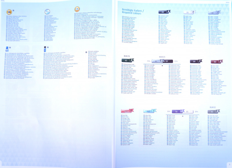 Sehr gut: in der Anleitung sind auch RLM-Farbtöne für die Lackierung vermerkt.