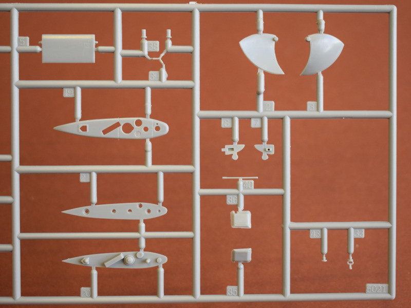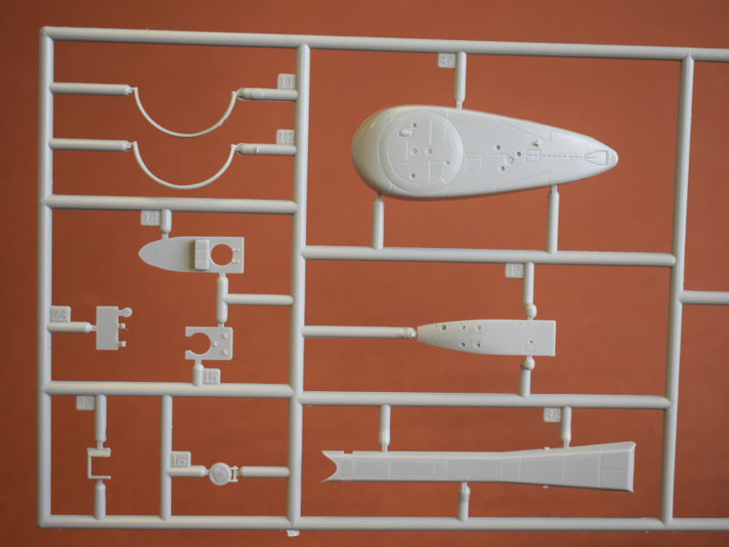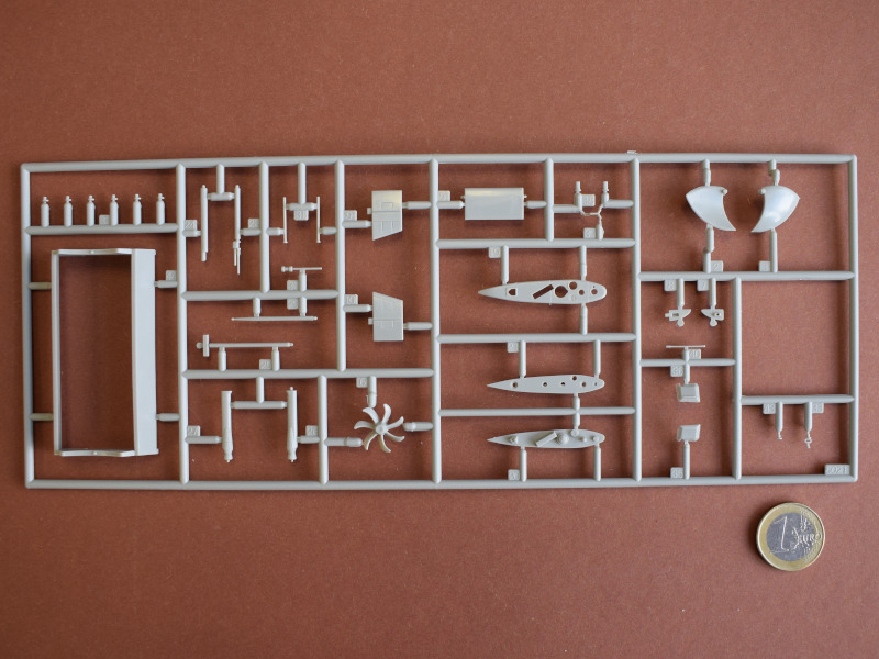 Type 206AVon den Type 206-U-Booten wurden 18 Einheiten in Deutschland gebaut, und der erste Stapellauf fand 1971 statt. Charakteristisch für diese Boote war die Verwendung von nichtmagnetischem Stahl als Einhüllenboot und die Unterbringung des Sonars in einer Kuppel unter der dem Bug. Spektakulär war der Einsatz von U24 während der NATO-Übung JTFEX 01-2, die 2001 in der Karibik stattfand. Das sehr leise fahrende und damit schwer zu ortende U-Boot durchbrach den Ring der Sicherungsschiffe um den Atomflugzeuträger U.S.S. Enterprise. Es wurden mehrere simulierte Torpedos abgefeuert und das Schiff durch das Angriffssehrohr fotografiert. Anschließend tauchte U24 unangekündigt neben den Flugzeugträger auf. Der kommandieren U.S. General war nicht erfreut über das Versagen der U.S. Navy. Dem deutschen U-Boot und seiner Besatzung war eine außergewöhnliche Leistung gelungen. Einige Boote wurde zum Typ 206A umgebaut, einige verschrottet und zwei Stück nach Kolumbien verkauft wo sie seit 2015 im Dienst sind. Zwei weitere Boote sind noch in Kiel als Ersatzteilspender für die kolumbianischen Schiffe eingelagert. U17 gehört heute der Wehrtechnischen Studiensammlung (WTS) Koblenz und befindet sich als Dauerleihgabe im Technik-Museum Sinsheim. Nach der Erstauflage ist der Bausatz erst die dritte Wiederauflage von Revell. Kein anderer Hersteller hat die 206/206A als Spritzgussbausatz im Sortiment. Da die fast 30 Jahre alte Spritzform nicht oft verwendet wurde, sind so gut wie keine Unsauberkeiten an den Spritzrahmen zu erkennen. Der mitgelieferte Displayständer ist zweckmäßig. Der Modellbauer hat einige Optionen, um sein Modell darzustellen.