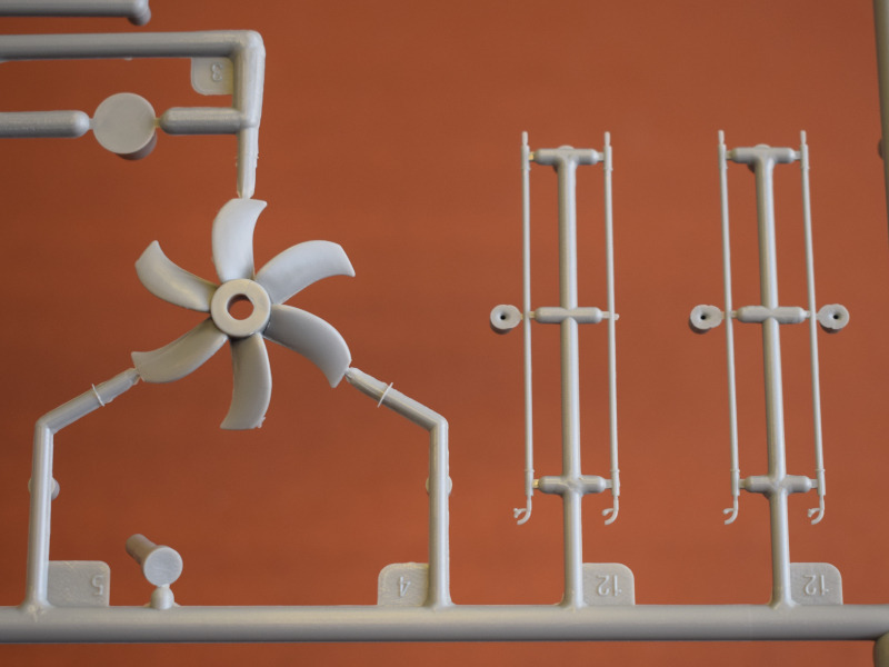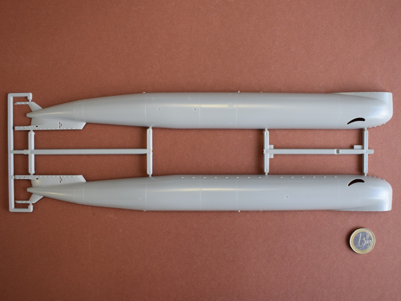 Type 212ADie U-Boote dieses Typs sind die weltweit ersten, die mit einem Brennstoffzellen-Antrieb ausgerüstet sind und unabhängig von Außenluft fahren können. Alternativ können auch Elektro- oder Dieselmotoren den Antrieb übernehmen. Durch den Einsatz der Brennstoffzelle sind diese U-Boote unter Wasser die leisesten der Welt. Seit 2002 wurden 10 Einheiten in zwei Baulosen gebaut. Darunter sechs für die deutsche Marine und vier für die italienische Marine. Weitere Versionen für den Export (Klasse 214, 216 und 218) werden derzeit unter deutscher Federführung in Griechenland, Türkei, Südkorea und Singapur gebaut. Man kann also durchaus von einem erfolgreichen U-Boot-Konzept sprechen. Revell hat als einzige Firma ein Type 212A als Spritzgussbausatz in 1:144 im Sortiment. Die Erstauflage war im Jahr 2005, und 2014 folgte die erste Wiederauflage. An den Bauteilen sind nur wenige Unsauberkeiten zu finden. Diese sind jedoch leicht und schnell zu enfernen. Vergleicht man Originalfotos mit dem Modell, so wirken die versenkten Gravuren etwas zu breit bzw. tief. Einige Bohrlöcher müssen selbst gesetzt werden. Es gibt auch wieder die Optionen die Periskope, Antennen und Messfühler auf der Oberseite des Turms auf- oder eingefahren darzustellen. Auch die beiden Türen können offen oder geschlossen montiert werden. Der Faden für die Antennendrähte muß aus eigenen Beständen verwendet werden. Auch bei diesem Modell ist ein Displayständer enthalten.