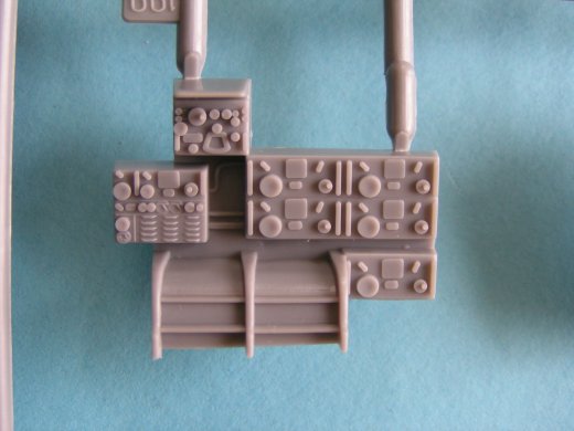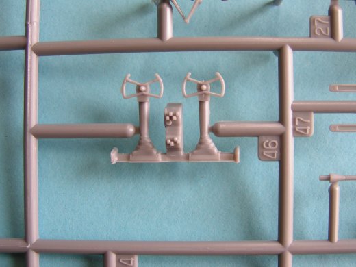 Die Instrumentenkonsole liegt in Form eines Klarsichtteiles bei. Im weiteren finden sich etliche Klarsichtteile für die Verglasung der Kanzel und der MG Stände. Diese liegen dabei spezifisch für alle Varianten bei. Die Räder weisen bereits ein abgeflachtes Profil auf und können direkt aus dem Bausatz verbaut werden. Für die Bestückung des Bombenschachtes liegen unterschiedliche Spreng- und Wasserbomben sowie der Zusatztank, der zur Reichweitenerhöhung im Schacht platziert werden konnte, bei. Dieser wurde z.B. beim Doolittle Raid gegen Tokio in den daran teilnehmenden Maschinen eingebaut. Ebenso beinhaltet der Bausatz Außenpylone, die aber für die Bausatzvarianten keine Verwendung finden.