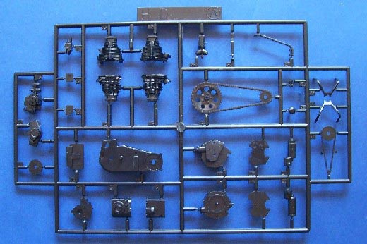 Der Motorblock und die Zylinder sind 2-teilig ausgeführt. Die Passgenauigkeit und Detaillierung der Teile ist gut. Leider sind Zylinder älteren Baujaheres eingefügt, entsprechen somit nicht dem Deckelbild.