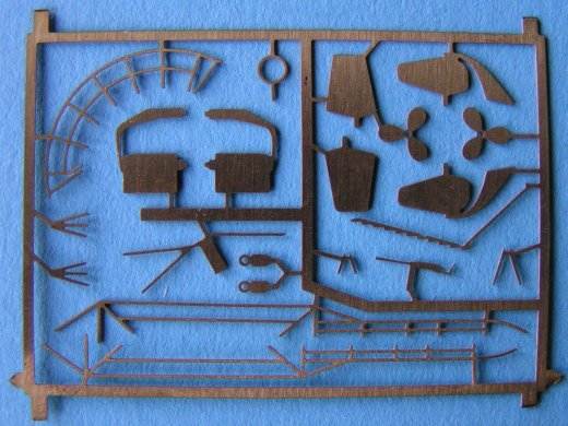 ÄtzteileDer kleine Fotoätzbogen enthält Teile für Schrauben und Ruder, die Tiefensteueranlage Bug und Heck, Reling, Netzschere, Reling für den Wintergarten, 2 cm Flak, Peilsender usw. Das verwendete Ätzblech ist etwas dick und die Teile weisen nicht die Feinheit der Produkte von White Ensign oder Gold Medal Model auf, sind aber qualitativ durchaus ausreichend!