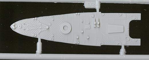 Hier findet man den Unterwasserrumpf, Schrauben, zwei Sorten Wellen, Wellenböcke und Schlingerkiele sowie drei Sorten Ruder. Außerdem ist noch ein Ständer vorhanden.
