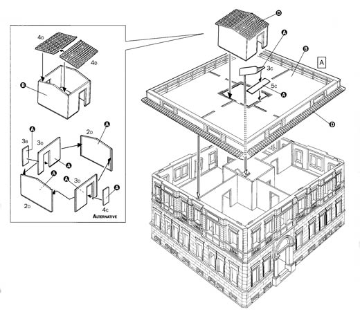 Fazit:Der erste Gedanke ist: „Endlich einmal keine Ruine, sondern ein vollständiges großes Stadthaus“. Das ist soweit ja auch richtig. Danach stellt sich dann wahrscheinlich die Frage nach Türen oder Fenstern. Will man den Räumen Leben einhauchen, bleibt eine ganze Menge Arbeit bis zum ersten Tapezieren. Diese Besprechung stammt von Michael Döring - 11. Mai 2007 © 2001-2025 Modellversium Modellbau Magazin | Impressum | Links |
