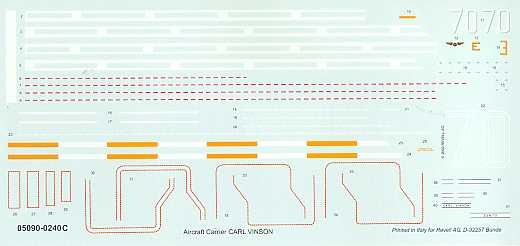 Der DecalsatzSauber gedruckte Markierungen und Schiffsnummern. Auch Hoheitsabzeicher der Flugzeuge sind vorhanden. Trotzdem wird man um eine Klarlackbehandlung nicht herumkommen.