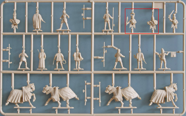 Die Qualität des Spritzgusses ist sehr gut. Gravuren zur Holz- oder Stein-Darstellung können sich sehen lassen und auch die Pferde, Ritter, Knappen und Fräulein machen einen guten Eindruck. Grat ist kaum zu bearbeiten und die Ruinenstücke der Mauern sind beidseitig detailliert. Auswerfermarken gibt es ebenfalls keine auffälligen. Die Bemalung muss nach der Kartonillustration oder eigenem Geschmack erfolgen, nur für die Schilde und Fahnen des kleinen Unterstandes gibt es einen Decalbogen, für die Schilde der Reiter fehlen diese. Der Zusammenbau der Teile wird auf der Rückseite gezeigt, leider wie schon gesagt ohne die Farbangaben wie man sie bei anderen Figurenpäckchen des Herstellers gewöhnlich vorfindet.