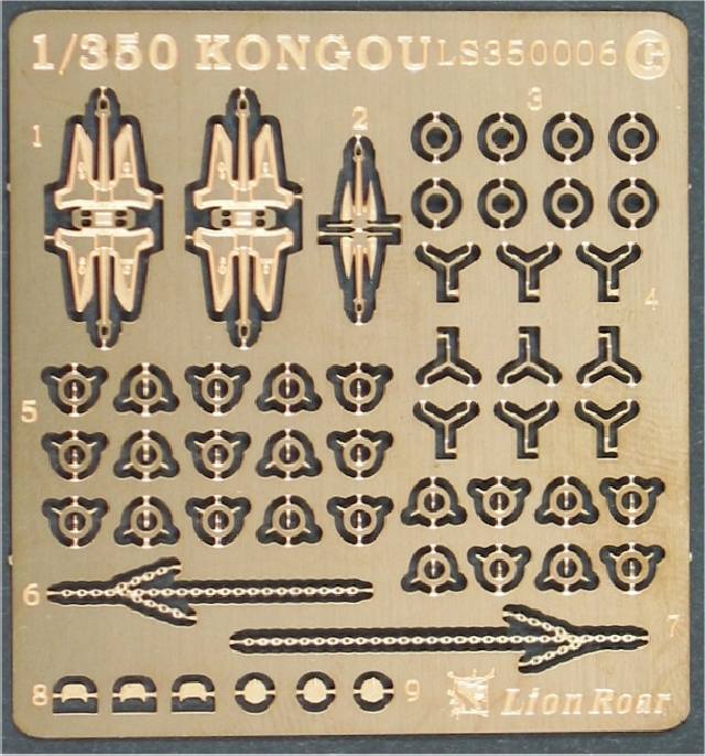 Nach der bereits vor wenigen Monaten erschienenen DDG-174 Kirishima schickte PitRoad im September 2007 auch die Namensgeberin der Klasse die „DDG-173 Kongou“ im großen 1/350 Maßstab in den Wettbewerb. Sowohl Kirishima als auch Kongou sollen außerhalb Japans als Kooperationsprodukt unter dem Trumpeter Label vertrieben werden. Obwohl die Kirishima schon mehrere Wochen in Japan zu haben ist, habe ich bis heute weder im Einzelhandel noch im Online-Handel in Deutschland etwas davon gesehen. Nun trudelte mir der flammneue Zurüstsatz von Lion Roar in Haus. Der Zurüstsatz wurde bereits dadurch geadelt, dass er exklusiv unter dem PiRoad Label in Japan angeboten werden wird. Für alle anderen Märkt wird er unter dem Sigel des brüllenden Löwen verkauft. Das Super-Set bietet auch dieses Mal Bauteile der Extraklasse. Bis Dato konnte jedes Super Set der Reihe mit einer Neuheit glänzen. Neben Styren, Draht, Ätz- und Drehteilen sind auch dieses mal wieder Resin-Gußstücke Bestandteile des Kits. Als Neuheit liegen diesem Kit feine Stahldrähte bei: Ein Multi-Media-Kit im wahrsten Sinnes des Wortes.