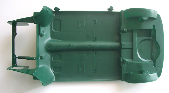 Der Unterboden ist 1-teilig gespritzt, Die Angüsse sind minimal. Die Passgenauigkeit mit der Karosse hervorragend.