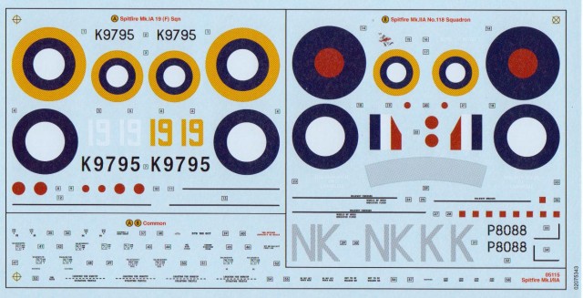 Der Decalbogen sieht auf den ersten Blick gar nicht mal so schlecht aus. Es gibt 2 Markierungsoptionen mit einem kompletten Satz Wartungshinweisen. Alle schwarzen und weißen Decals sind von sehr guter Druckqualität und durchaus verwendbar. Bei den farbigen Decals sieht die Sache allerdings anders aus. Hier erkennt man sehr deutlich ein Druckraster, besonders beim Gelb. Dies betrifft vor allem die Kokarden sowie die Nummern und Buchstaben. Da das jedoch generische Decals sind dürfte es nicht allzu schwierig sein Ersatz zu finden, ein komplett neuer Zubehörbogen ist jedenfalls nicht erforderlich. Die Bauanleitung ist klar und übersichtlich gegliedert. Die Farbanagaben beziehen sich auf die Humbrol-Palette. Die Bemalungs- und Decalanleitung ist als separates, farbiges DIN A4 Blatt beigelegt, ganz so wie wir es sonst nur aus Fernost gewohnt sind. In der Summe also ein gemischtes Paket. Auf der Habenseite stehen die versenkten Gravuren und die ausbaufähige Detaillierung. Hinzu kommt das man hier auch mal eine Vorkriegsmaschine aus dem Kasten bauen kann. Auch nicht ohne ist die "Nachfüllpackung" für die Spitfire-Grabbelkiste. Getrübt wird das Ganze durch die eher mäßigen Klarsichtteile und die teilweise unbrauchbaren Decals. Der Preis von 17 Euro ist da natürlich nicht gerade ein überzeugendes Kaufargument.