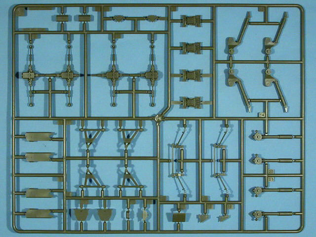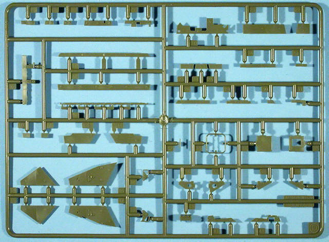 Randvoll mit Spritzlingen/Teilen präsentiert sich die Verpackung des Stryker M-1130 mit der Nummer 35130. Die Teile sind schön detailliert, sauber im Spritzguß und weisen nur ein Minimum an Grat auf. Auch Auswerferstellen sind augenscheinlich nur auf der am fertigen Modell nicht sichtbaren Seite zu finden.