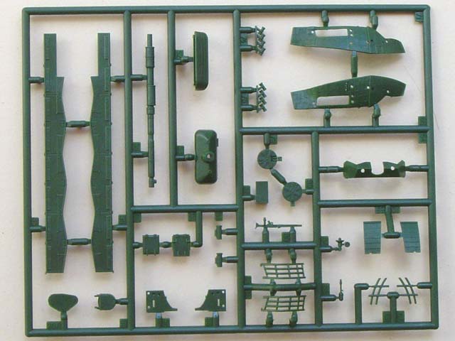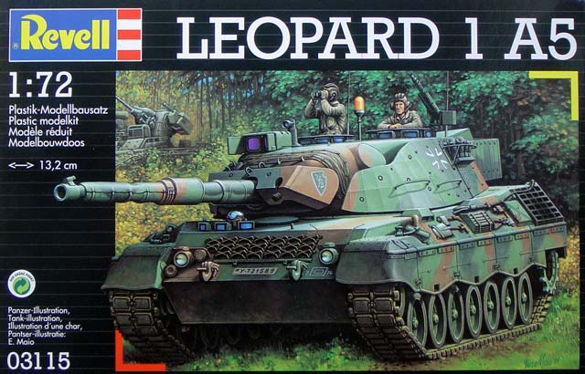 Auf vier grüne Spritzlinge hat Revell die Teile für den Leopard 1 in der Ausführung 5 verteilt. Die Details sind sehr schön wiedergegeben und die Einzelteile sind weitesteghend ohne Grat und Auswerfermarken. Die gute Passgenauigkeit rundet das positive Erscheinungsbild ab. Die Ketten sind aus Spritzguss und in Einzelglieder bzw. Segmente aufgeteilt. Mit dem beiliegenden kleinen Decalbogen lassen sich zwei Fahrzeuge der Bundeswehr darstellen. Der Inhalt des Bausatzes