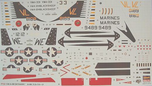 Besprechung:Als letzte Hauptvariante der A-4 Familie trat Anfang der 70er Jahre die A-4M ihren Dienst bei den US Marines an. Der Hasegawa Kit beruht auf den bekannten A-4 Kits. Den Klarsichtspritzling, sowie 2 neue Spritzgußäste, hat Hasegawa speziell für die A-4M Version neu hinzugefügt. Alle Spritzlinge sind sauber, einzeln in Tüten verpackt. Unter den neuen Spritzlingen befinden sich auch die für die M- Variante markanten Teile wie z.B. das eckige Seitenleitwerk, der RHAWS Behälten, Cockpithaube mit geänderter Form usw.