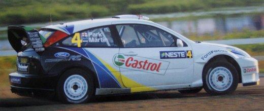 Nach der Gruppe B Zeit mit dem RS 2000, Gott habe sie selig, kam dann der Gruppe A Sierra zum Einsatz. Im Jahre 1993 kam dann die letzte Stufe des Escorts in die Rallye WM. Erst als der sogenannter Cossy in der Gruppe A Version, später dann auch noch als WRC Version. Ende der neunziger Jahre stellte Ford die Produktion des Escorts ein. Somit kam sein Nachfolger FOCUS zum Einsatz. Im Jahre 2003 fing Ford nicht an zu kleckern sondern an zu klotzen. Aus dem Focus wurde ein richtiges Flügelmonster. Märtin konnte mit diesem Fahrzeug auf den Schotter HIGHSPEED PISTEN Finnlands seine Gegner hinter sich lassen. Hierbei konnte er sogar noch einen Weltrekord aufstellen. Bei einem JUMP konnte er 57 Meter weit fliegen bei einer Geschwindigkeit von 171 km/h.