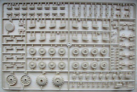 Die Ketten ......in diesem Bausatz entsprechen der frühen Ausführung mit 133 Kettengliedern pro Seite. Ebenfalls korrekt für diese Ausführung ist hier die Darstellung der Kette ohne die Löcher in den Führungszähnen.
