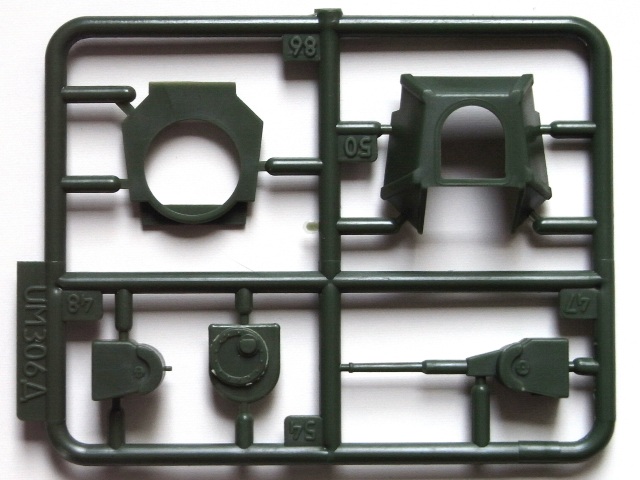 Spritzling D enthält die Turmteile. Das Kanonenrohr muss auf gebohrt werden und kann nur in einer Position dargestellt werden. Die Luken am Turm sind geschlossen dargestellt. Für alle Spritzlinge gelten eine hohe Passgenauigkeit, keine Sinkstellen und kein Grat.