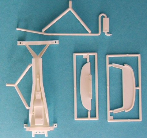 Besprechung:Da ich lange auf der Suche nach dem Elan war, den Emma Peel, alias Dianna Rigg, in den klassischen Krimis „Mit Schirm, Charme und Melone" fuhr, macht mich ein Mitglied in einem Modellbauforum auf diesen eigentlich nicht mehr erhältlichen Bausatz aufmerksam. Ich fand den Bausatz schließlich noch in einem Online-Shop. Der Bausatz macht auf den ersten Blick einen guten Eindruck. Es sind keine Fischhäute zu sehen. Störende Auswerfermarken sind mir nicht aufgefallen.Der Bausatz wurde von Mr. Hobby vertrieben, auf den Spritzlingen ist Gunze Sangyo angegeben. Der Karton trägt im Gegensatz zu den in den 1990ern erschienenen ein © von 2002. Das Original wurde von 1962 bis 1975 gefertigt, als Cabrio und Coupé vertrieben, die zweite Generation von 1989 bis 1995, nur als Cabrio.