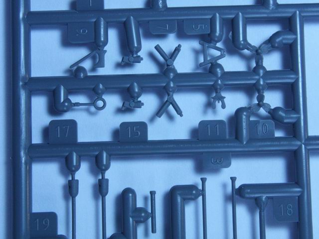 Das Deck ist hingegen fein detailliert, Grätings, Luken, Poller sind gut dargestellt, ob die Anordnung wirklich dem Original entspricht, kann ich nicht verifizieren. Es sieht aber sehr plausibel aus und deckt sich mit den mir bekannten Fotos von Booten dieses Typs. Entsprechend lackiert dürfte dieses Deck ein Genuss sein. Teil „A“ des zweiten Spritzlings enthält die Teile für dem Turm, den Turmboden, die Netzsäge, alles ebenfalls fein detailliert und originalgetreu. Als besonderes „Schmankerl“ ist in dem Spritzling noch ein Schnorchelmast vorhanden. Dieser gehört nach meinen Quellen sicher nicht zu diesem Boot, wird aber wohl kaum lange in der Restekiste verbleiben. Die 2cm-Flak erscheint mir im Vergleich zu der 3,7 cm und der 10,5 cm-Kanone etwas grob, zumal sie recht exponiert im Wintergarten stehen wird.