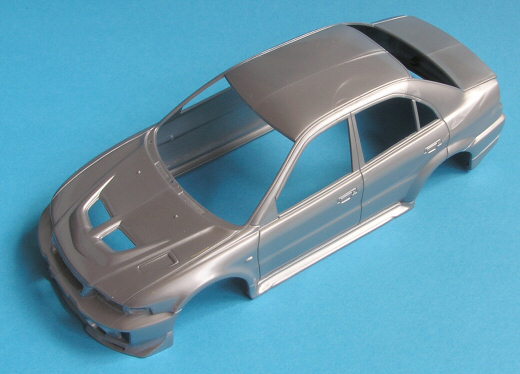 Besprechung:Der Bausatz stellt die 1998iger Straßenversion des Mitsubishi Lancers dar. Mit knapp etwas über 60 Teilen zählt er zu den "Low-Tech" Bausätzen in der Fujimi-Palette. Die Gussqualität ist einwandfrei, lediglich eine kleine Sinkstelle am Armaturenbrett stört das Bild. Die Detaillierung muss der geringen Teilezahl Tribut zollen, es gibt weder Motor noch Getriebe - ja selbst deren Andeutungen als Relief auf der Bodengruppe ist sehr schlicht ausgefallen. Wenigstens der Auspuff ist als separates Bauteil ausgeführt. Bei der Radaufhängung bietet sich ein ähnliches Bild. Besser sieht es dann im Innenraum und bei der Karrosserie aus, hier kann man mit ein wenig Farbe ein durchaus zufriedenstellendes Ergebnis erzielen.