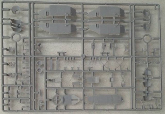 Der Bausatz ist schön detailliert und hinterlässt einen guten Eindruck. Hier Teile des Fahrwerks und ein Ausschnitt von der Panzerung. Zur damaligen Zeit wurden die Fahrzeuge nicht geschweißt, sondern genietet. Die Nieten waren ein auffälliges Merkmal des Fahrzeuges.