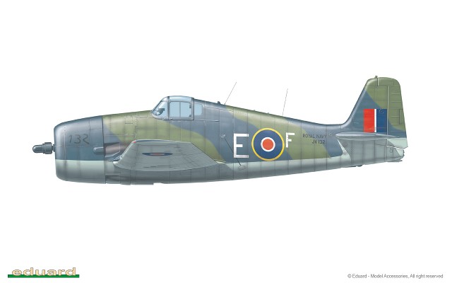 Hellcat Mk I JV 132, Lt. Blyth Ritchie, 800 Sqn. FAA, HMS Emperor, 08. Mai 1944 (Grafik: Eduard) Darstellbare Maschinen: