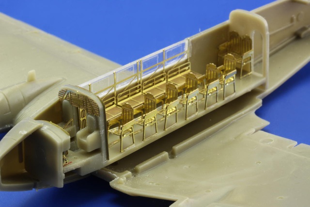 Nachdem bereits ein Set für die militärische Version der Ju-52 erschienen ist, hat Eduard nun auch etwas Passendes für den Airliner nachgelegt. Damit lässt sich nun im Wesentlichen der Innenraum der Maschine ausgestalten. Neben den Teilen für's Cockpit ist auf den zwei Bögen die komplette Bestuhlung des Passagierabteils enthalten, inklusive aller Sitzgurte. Um das Ganze am Ende nicht zu 100% im Dunkeln verschwinden zu lassen, ist eine der beiden Türen als Ätzteil beigelegt, zuvor muss natürlich der entsprechende Bereich am Bausatz herausgetrennt werden. So schön wie auf den Eduard-Werbebilden wird man das am fertigen Modell aber nicht mehr sehen, es sei denn man verzichtet auf das Verkleben des obere Rumpfteils. Über Sinn und Unsinn dieses Sets kann man daher vortrefflich streiten. Die Teile für den Außenbereich, leider nur sehr wenige, sind aber in jedem Fall eine Bereicherung des Modells.