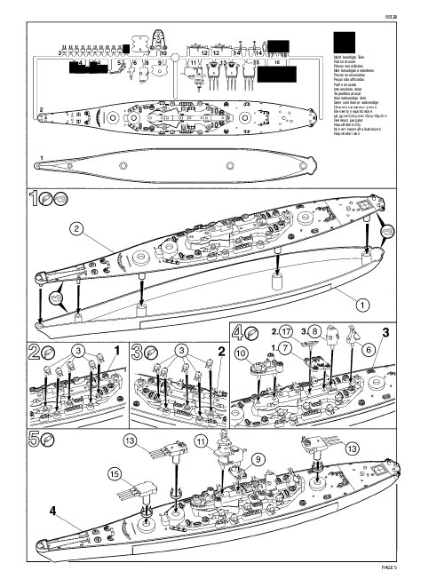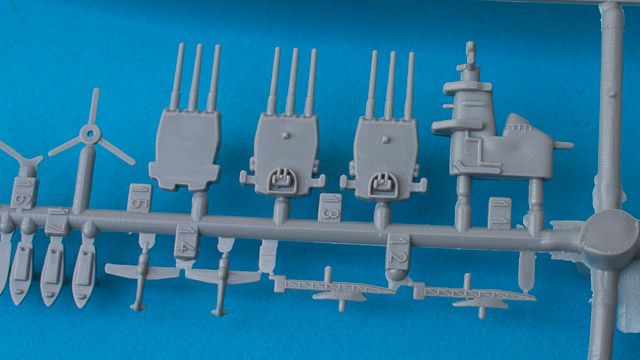 Der Bausatz ist eine Wiederauflage aus der früheren Miniships-Serie. Dementsprechend einfach ist das Ganze gehalten. Gerade einmal 27 Bauteile gilt es zu verarbeiten. Die Detaillierung ist in anbetracht der Zielgruppe und des eigentlichen Zwecks gar nicht mal so schlecht. So erhalten auch Anfänger ratzfatz ein ansprechendes Modell mit dem man sehr gut spielen kann. "Richtige" Modellbauer werden damit ohnehin nicht viel anfangen können. Nahezu alle Geschütze und sonstigen Aufbauten sind bereits am Rumpf angespritzt und zum Teil auch sehr rudimentär ausgeführt. Das Schiff ist als Wasserlinienmodell ausgeführt. Die Hubschrauber sind hier nicht zu verwenden und wären natürlich nur für die Nachkriegszeit zu gebrauchen. Einige der Rettungsboote bleiben ebenfalls übrig. Die Bauanleitung ist kurz und schmerzlos, die angegebene Bemalung ist sicherlich nicht so ganz einfach am Modell umzusetzen, zumindest nicht für Anfänger. Angaben zum Zeitraum welches das Modell repräsentiert gibt es keine, das Measure Tarnschema lässt jedoch den Zustand auf das Jahr 1944 eingrenzen.