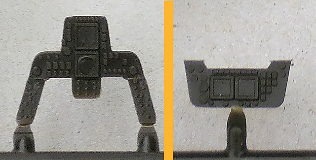 Auch das Cockpitinnere, das durch die großen Glasflächen und geöffnet darstellbaren Einstiegsluken gut einsehbar ist, steht auf der Minusseite der Bilanz. Detaillierung ist in diesem Bereich Fehlanzeige, kahle Seiten- und Rückwände sowie eine nur rudimentär und nicht vorbildgetreu nachgebildete Instrumentierung auf Armaturenbrettern und Seitenkonsolen bestimmen das Bild. Pilotensitze und Steuerelemente sind ebenfalls sehr einfach gehalten, haben mit dem Vorbild lediglich den Namen gemeinsam und verbessern somit den Gesamteindruck im Cockpit keineswegs.