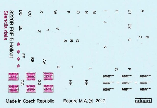 Die beiden Decalbögen sind ausnahmsweise mal nicht von Cartograf gedruckt sondern eine nationale Produktion. Der Druck ist sehr sauber, lediglich bei den Propellerlogos ist bei genauerer Betrachtung ein minimaler Versatz erkennbar. Es können insgesamt vier Maschinen dargestellt werden, allesamt im typischen Navy-Blue. Die erste Maschine, die Bu.No. 42158, geflogen von Lt. JG Ray Hawkings, fällt durch ihre zahlreichen Einsatzmarkierungen auf. Der vertikale weiße Streifen am Seitenleitwerk war das Erkennungszeichen der USS Cabot. Ray "Hawk" Hawkings, mit 14 bestätigten Abschüssen war diesbezüglich die Nummer zwei seiner Einheit, der VF-31. Sein militärisch erfolgreichster Tag war sicherlich der 13. September 1944, als er während einer Schlacht bei Mindanao/Philippinen fünf japanische Maschinen abschoss und dadurch ein sogenanntes "ace in a day" wurde. Nach dem Krieg flog er bei den Blue Angels, schließlich kommandierte er in den 1960er Jahren die Atsugi Naval Air Station in Japan.