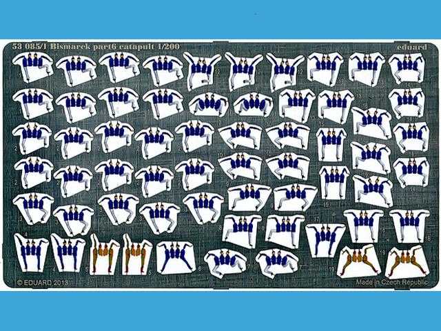 Besprechung:Das Katapult plus BordflugzeugZwei PE-Platinen nebst vier Seiten Bauanleitung beinhaltet dieses Set von Eduard, das ebenfalls für den Bausatz des German BISMARCK Battleship von Trumpeter gedacht ist. Speziell geht es dabei um den Bereich des Bordkatapultes und das Bordflugzeug (vier Stück im Bausatz) selbst. Die Startvorrichtung bekommt eine Beplankung von oben und eine links-/backbordseitige Erweiterung mit einer kleinen Plattform nebst Geländer/Reling. Das Bordflugzeug erhält für die Kabine ein Innenleben und kann wahlweise, mit differenzierendem Unterbau, in zwei verschiedenen Positionen platziert werden. Soviel zu Katapult und Bordflugzeug.