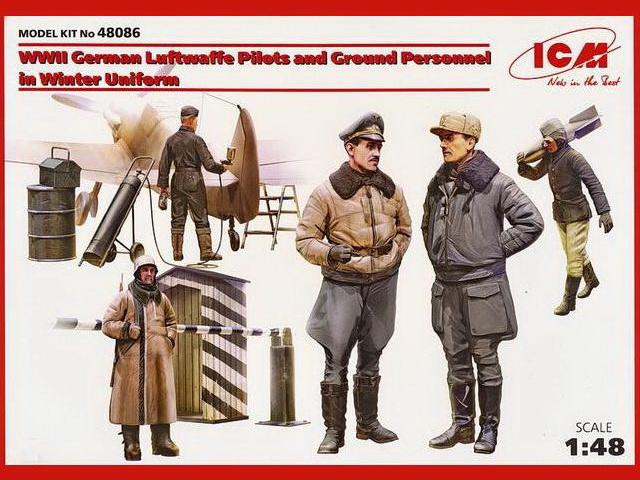 Besprechung:Darstellen lassen sich mit den Teilen dieses Bausatzes fünf maßstäbliche (1:48) Figuren der ''WWII German Luftwaffe'' in Winterbekleidung. Zwei davon sind Piloten, die restlichen drei Bodenpersonal. Mit im Umfang des Kit etwas Handwerkzeug sowie ein Schilderhaus nebst Schranke. Das Ganze (die Teile) schön detailliert und sauber in sandfarbenen Kunststoff gespritzt. Kaum warnehmbarer Grat an der Trennstelle der Spritzgussform ist leicht zu egalisieren. Sinkstellen im Material sowie deplatzierte Auswerferstellen im Sichtbereich sind nicht feststellbar. Unterstützung beim Zusammenbau erhält man von der zwei Seiten umfassenden Bauanleitung. Hier findet man dann auch die Hinweise zur Farbgestaltung bezogen auf die Farben von Model Master.