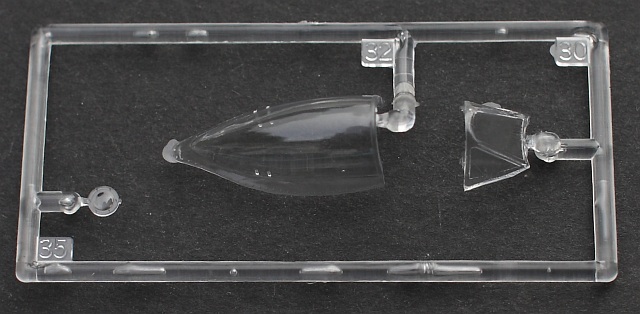 An Außenlasten liegen ein Satz Unterflügeltanks sowie zehn 5" Raketen bei, welche man bei der -M Version aber nur selten auf Bildern sehen kann. Die Flügeltanks wurden wegen ihres hohen Luftwiderstandes auch nur selten getragen. Die Klarsichtteile sind so lala, relativ dick und nicht ganz schlierenfrei, zudem zieren einige Kratzer die Windschutzscheibe. Überhaupt lässt die Gussqualität hier sehr stark zu wünschen übrig. Ordentlich Grat und Fischhäute sind an vielen Bauteilen vorhanden und müssen mühselig entfernt werden.