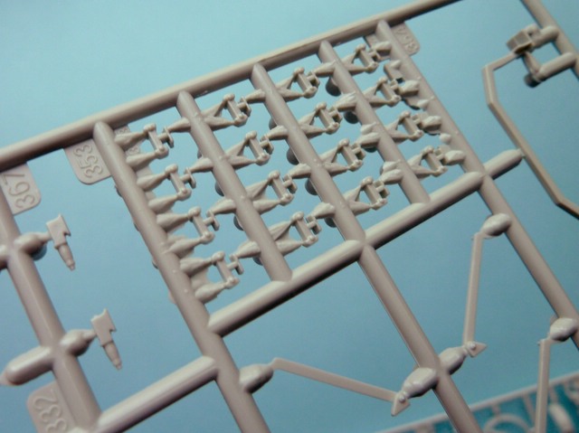 Das Modell:Revell brachte im Jahr 1989 einen ersten "32er Bausatz" des Eurofighters mit der Produktnummer 4794 auf den Markt. Dieser "Eurofighter EFA" genannte Bausatz ähnelte eher einem fiktiven Prototypen des damals noch als "Jäger 90" bezeichneten Projektes, als dem heutzutage aktuell in den Diensten verschiedener Luftwaffen stehenden Einsatzmuster. Fast zwanzig Jahre später, 2010, legte Revell eine einsitzige Variante des Eurofighters als Bausatz-Neuheit auf, auf deren Spritzgussform nun der vorliegende Doppelsitzer basiert. Der Bausatz wurde seinerzeit von Thorsten Wieking hier bei MV besprochen, und die wesentlichen Aussagen zu Qualität und Umfang des Kits sind auch heute noch aktuell, mehr dazu später. Sinkstellen oder Fischhäute im Plastik konnte ich vorliegend nicht erkennen. Drei neue Spritzlinge sind im Vergleich zum Modell aus 2010 hinzu gekommen: zwei für die zusätzliche Ausstattung des doppelsitzigen Cockpits und ein weiterer mit Waffenzuladung für eine Jagdbomber-Konfiguration, letzterer Spritzling in doppelter Ausfertigung. An diesen Gussästen befindet sich netter Weise auch ein deutscher "Aufklärungsbehälter" (Recce Pod, Teile 231-233) in doppelter Ausfertigung, der allerdings nichts an einem Eurofighter verloren hat: Aufklärungsmissionen gehören (noch) nicht zum Repertoire des High-Tech Flugzeugs. Aber den Besitzer eines 1:32er Tornado-Modells wird es freuen, sich dieser Zuladung zur Darstellung eines "Recce Tonis" anzunehmen.