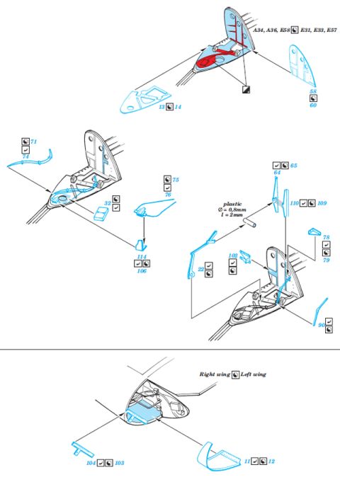 Besprechung:Das Set beinhaltet Teile für das Spornrad, Fahrwerkschächte, Fahrwerke und Zubehör für den Klappmechanismus der Tragflächen.