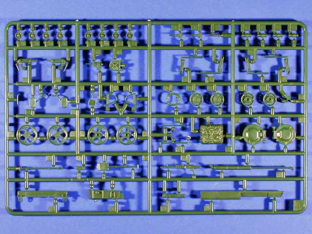 Das erste und zweite Modell wurde hier auf Modellversium als Einzelbausatz bereits vorgestellt, so dass ich mich im Text auf das BF/UF beschränken möchte. Die Teile von drei Spritzlingen nebst zwei Vinylketten machen den Bau des BF/UF möglich. Hier ist aber nur Spritzling G neu, die anderen beiden (A+B) kennen wir schon von den bereits vorgestellten Modellen her. Selbstverständlich gehört auch ein Stück Stahldraht zur Darstellung der Funkantenne dazu. Die Kunststoffteile sind m.E. recht gut detailliert und weisen augenscheinlich keine deplatzierten Auswerferstellen im Sichtbereich des fertigen Modells auf. Lediglich auf der Innenseiten der geöffnet darstellbaren Lukendekel würde man sie beseitigen müssen. Spritzgusstechnisch nicht vermeidbarer leichter Grat, welcher von der Trennstelle der Form herrührt, sollte sich problemlos beseitigen lassen. Mit Hilfe der zum Modell gehörenden Bauanleitung von Seite16 bis 21 und untergliedert in 39 Abschnitte sollte der Zusammenbau keine Probleme bereiten. Hier findet man dann auch die Hinweise zur Farbgestaltung mit Farben von REVELL. Der Decalbogen ist für alle Modelle gedacht und lässt die Dekoration von zwei unterschiedlichen Modellen des BF/UF zu.