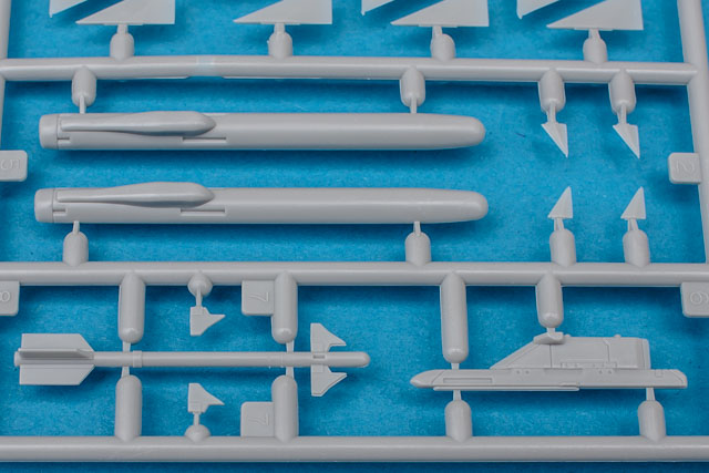 Der Bausatz von Hasegawa hat mittlerweile auch schon einige Jährchen auf dem Buckel. Zum ersten Mal erschien er im Jahre 2000, nachdem zuvor bereits einige Prototypen vermarktet wurden. Die Qualität und Detaillierung ist typisch Hasegawa. Schwerpunkt der Details liegt auf dem Außenbereich. Feine versenkte Gravuren mit teilweise erhaben ausgeführten Details zieren die Oberfläche, bei den Wartungsdeckeln sind sogar die Verschlüsse angedeutet. Die Aufteilung des Rumpfes entspricht denen der F-16 Bausätze im Maßstab 1:72, also separate, einteilige Tragflächen, zweigeteilter oberer Rumpf (wegen dem ebenfalls erhältlichen Doppelsitzer) und einteilige Rumpfunterseite. Der Lufteinlauf ist insofern interessant gestaltet, als dass es wie sonst üblich keine Rampe im Inneren gibt, die den Bugradschacht abdeckt, sondern der vordere Teil mit der Einlauflippe innen konisch zuläuft und nach knapp 15mm mit einer Platte verschlossen ist. Das dürfte eigentlich am fertigen Modell nicht weiter stören. Die drehbar baubaren Höhenleitwerke verfügen über angegossene Statikentlader, die man aber austauschen sollte, da sie viel zu dick sind, gleiches gilt für die an den Tragflächen. Die Details im Cockpit und im Fahrwerksbereich halten sich wie üblich in Grenzen. Die Instrumente werden mit Decals dargestellt und die Seitenwände und die Wanne sind vollkommen glatt. Den einfach gehaltenen ACES-II Sitz sollte man gegen einen aus dem Zubehör austauschen, da er noch nicht einmal über angedeutetes Gurtzeug verfügt. Die Fahrwerksschächte sind ebenfalls stark vereinfacht wiedergegeben, insbesondere der Hauptschacht ist meilenweit von der Komplexität des Originals entfernt. Die Fahrwerke selbst sind dagegen in Ordnung, allerdings sind die Teile recht filigran. Ein echter Pluspunkt an diesem Bausatz ist die beiliegende Zuladung. Hier bleiben keine Wünsche offen. Man hat die Auswahl zwischen der AAm-3 Luft-Luft-Rakete, ASM-2 Luft-Boden-Rakete sowie den großen Unterflügeltanks und dem kleinen Unterrumpftank. Damit können neun der elf Waffenstationen "belegt" werden. Für Hasegawa-Verhältnisse mehr als üppig! Die Klarsichtteile sind sehr dünn und von guter Qualität, allerdings hätten zwei einzelne Tüten wie bei den anderen Teilen die leider vorhandenen Kratzer vermeiden können. Die dreiteilige Cockpithaube kann auch geöffnet gebaut werden. Die Landescheinwerfer und die HUD-Scheibe sind ebenfalls als Klarteile ausgeführt.